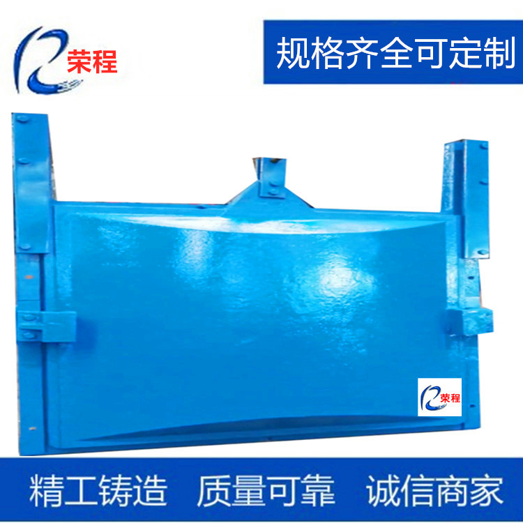 鑄鐵閘門的工作原理:閘板是直接承受水壓力的擋水構件, 閘框是閘板四周的支承構件, 同時也是閘板上下運動的滑道, 滑道以外部分鑲嵌于閘墩及閘底的二期混凝土中, 將閘板所承受的水壓力均勻地傳遞到閘墩及閘室底部。閘框迎水面四周與閘板框四周背水面接觸處經機械精制, 加工刨光后平直光滑、 貼合嚴密, 使結合面、 止水面與運動滑道合三為一。在啟閉機作用下, 當閘門啟閉運行時, 緊閉斜鐵和閘框滑道確保閘門的縱橫運行軌跡, 在水壓力和緊閉斜鐵的雙重作用下, 確保閘板運行平穩(wěn) , 使閘板與閘框滑道緊密貼合, 從而達到有效止水的目的。