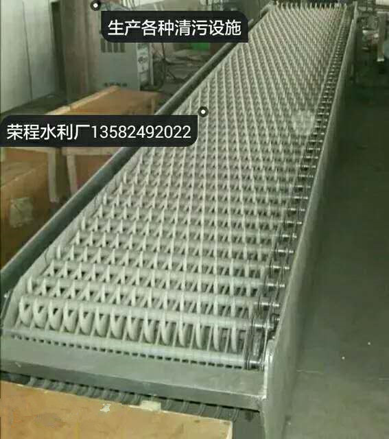 回轉(zhuǎn)式清污機(jī)的作用,清除附著在攔污柵上雜物(一般稱污物)的機(jī)械設(shè)備。在污物較多的水庫(kù)或河道上,為保證水電站或泵站得以安全、正常地運(yùn)行,常需設(shè)置清污機(jī),以便在不停機(jī)和不放空水庫(kù)的條件下進(jìn)行清污。回轉(zhuǎn)齒耙式清污機(jī)一般與攔污柵做成整體,動(dòng)力裝置分為液壓馬達(dá)驅(qū)動(dòng)和電動(dòng)機(jī)驅(qū)動(dòng),回轉(zhuǎn)齒耙式清污機(jī)的清污刮板傳動(dòng)裝置宜采用回轉(zhuǎn)式輸送鏈
