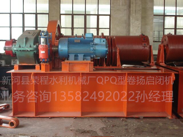 卷?yè)P(yáng)啟閉機(jī)是由人力或機(jī)械動(dòng)力驅(qū)動(dòng)卷筒、卷繞繩索來(lái)完成牽引工作的裝置。可以垂直提升、水平或傾斜拽引重物。卷?yè)P(yáng)啟閉機(jī)分為手動(dòng)卷?yè)P(yáng)機(jī)和電動(dòng)卷?yè)P(yáng)啟閉 機(jī)兩種。現(xiàn)在以電動(dòng)卷?yè)P(yáng)啟閉機(jī)為主。電動(dòng)卷?yè)P(yáng)啟閉機(jī)由電動(dòng)機(jī)、聯(lián)軸節(jié)、制動(dòng)器、齒輪箱和卷筒組成,共同安裝在機(jī)架上。對(duì)于起升高度和裝卸量大工作頻繁的情 況,調(diào)速性能好,能令空鉤快速下降。對(duì)安裝就位或敏感的物料,能用較小速度。