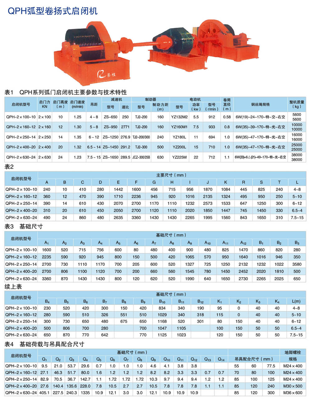 新河縣榮程水利機械廠卷揚啟閉機有多種型號:可以分為QPQ型普通卷揚啟閉機、QPK型快速卷揚啟閉機、QPG型高揚程卷揚啟閉機、QPT型臺車式卷揚啟閉機,QPM型門式卷揚啟閉機,QH型弧門卷揚啟閉機。卷揚啟閉機又分為:平門卷揚式啟閉機;弧形門卷揚式啟閉機;雙吊點卷揚式啟閉機;快速卷揚式啟閉機;移動式臺車啟閉機;雙吊點卷揚式啟閉機分為:集中驅動和單獨驅動兩種;卷揚式啟閉機手搖、電動兩用式規格分為:5噸、8噸、12噸、16噸、25噸;電動式規格分為:40噸、63噸、80噸、100噸、125噸、160噸、200噸,可以根據用戶要求設計,并能生產雙吊點卷揚式啟閉機,該機是一種水利工程專用機械,廣泛用于水利工程閘門的啟閉,是農田灌溉、水產養殖、農業經濟開發區、污水處理廠、水利發電站、水庫(水閘、堤壩、隧道、管 道)等進水、退水閘的配套機械,山區、平原有、無電地區均可使用。