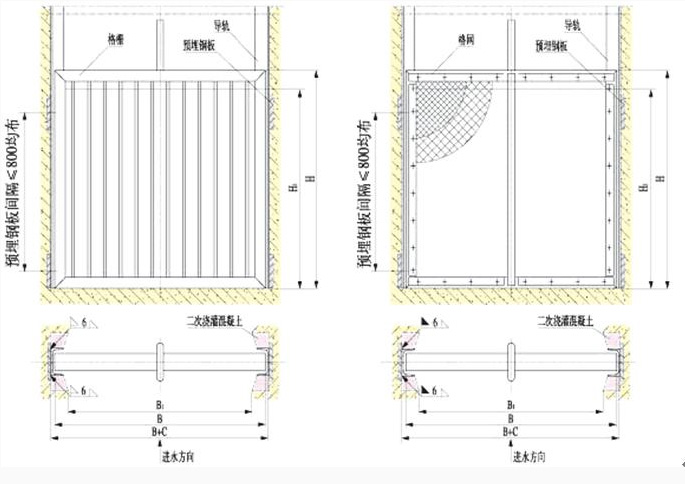 平面格柵,格網(wǎng)為給排水工程中取水口處的專用設(shè)備,用于攔截較大漂浮物,保護(hù)和減輕后續(xù)工藝流程的運(yùn)行。