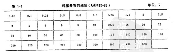 (起重量的國家標(biāo)準(zhǔn)(GB783—65)圖表)