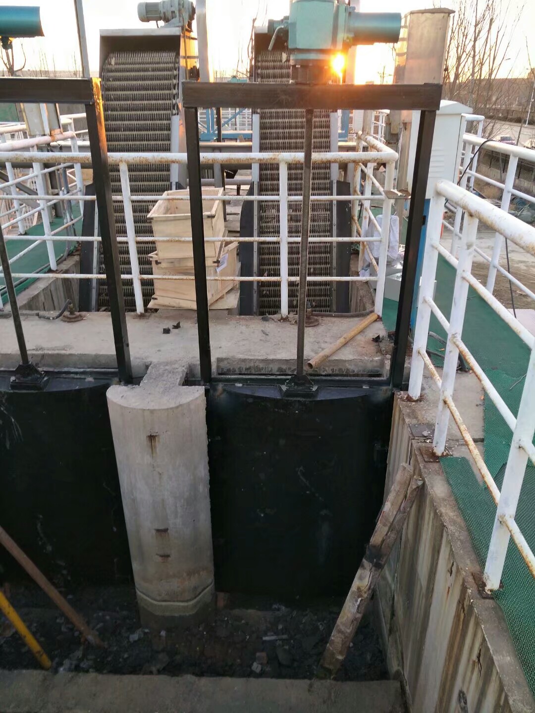 8、在澆筑混凝土時,流進閘板、閘框、斜鐵、擋板間隙中的灰漿應(yīng)清除,防止灰漿凝固影響啟閉。